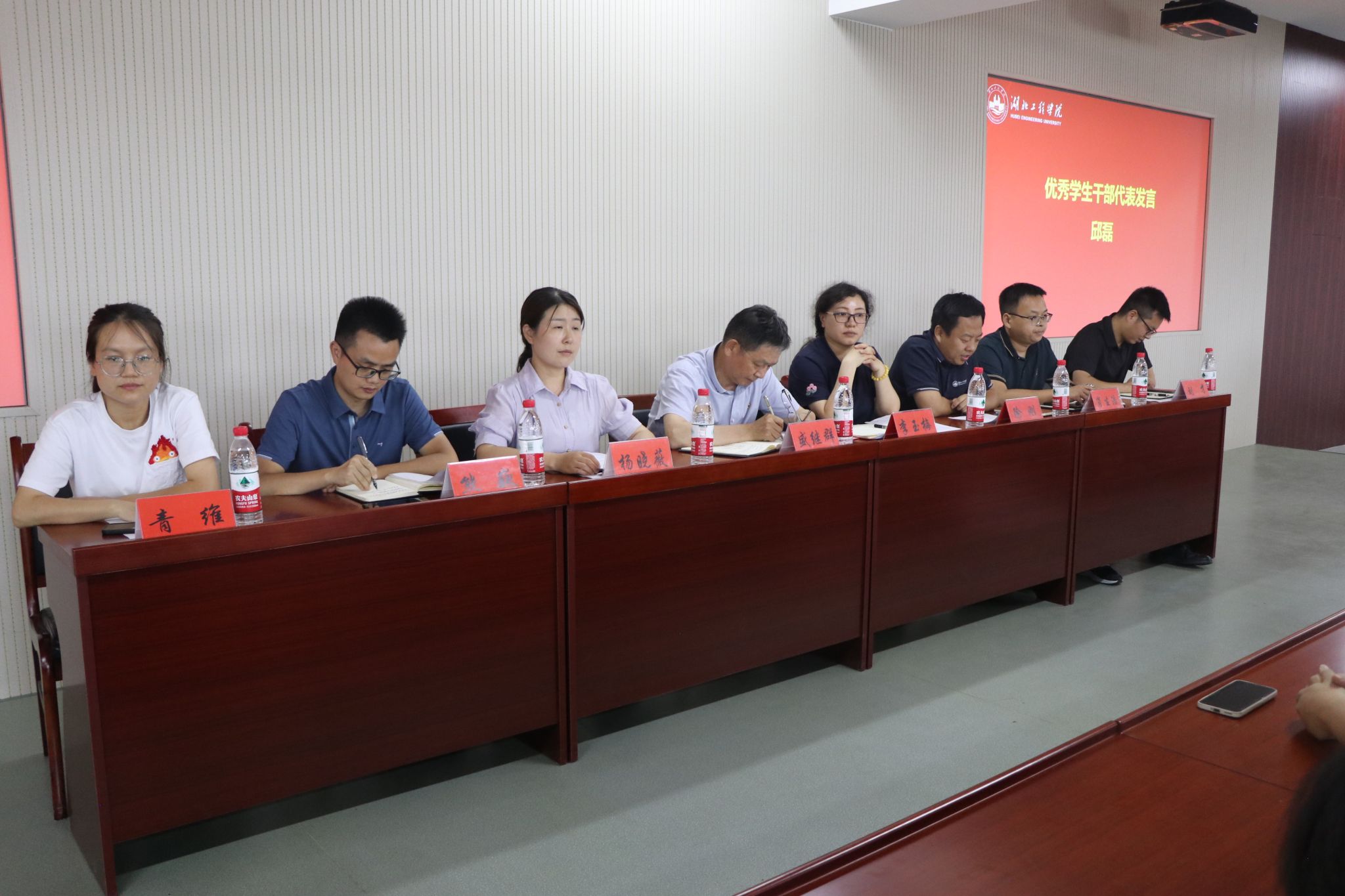 湖工榜样学子、国家奖学金获得者代表高重鸣讲述了自己迈入竞赛和科研的学习经过,希望同学们对学习充满兴趣,对学术要有探究欲望;考研成功代表熊丹阳向同学们分享考研心得,为准备考研的同学在备考中可能遇到的各种问题提出了一些合理化建议;学生骨干代表邱磊讲述了自己在担任学生干部期间的心路历程,并以身作则要为同学们的大学生活贡献自己的一份力量;优质企业就职代表张闯为准备找工作的同学分享了各种实习建议,给同学们传授了许多宝贵经验;学科竞赛获奖学生代表何太平分享他在大学里参加学科竞赛积累的经验,激发同学们对学科竞赛的兴趣,为同学们参与学科竞赛提供了一份导航;优秀校友青年代表高军翔、罗子涵分别讲述了自己毕业投入到祖国的西部建设事业和积极就业的工作历程为同学们毕业后的发展道路提供了非常有意义的建议。