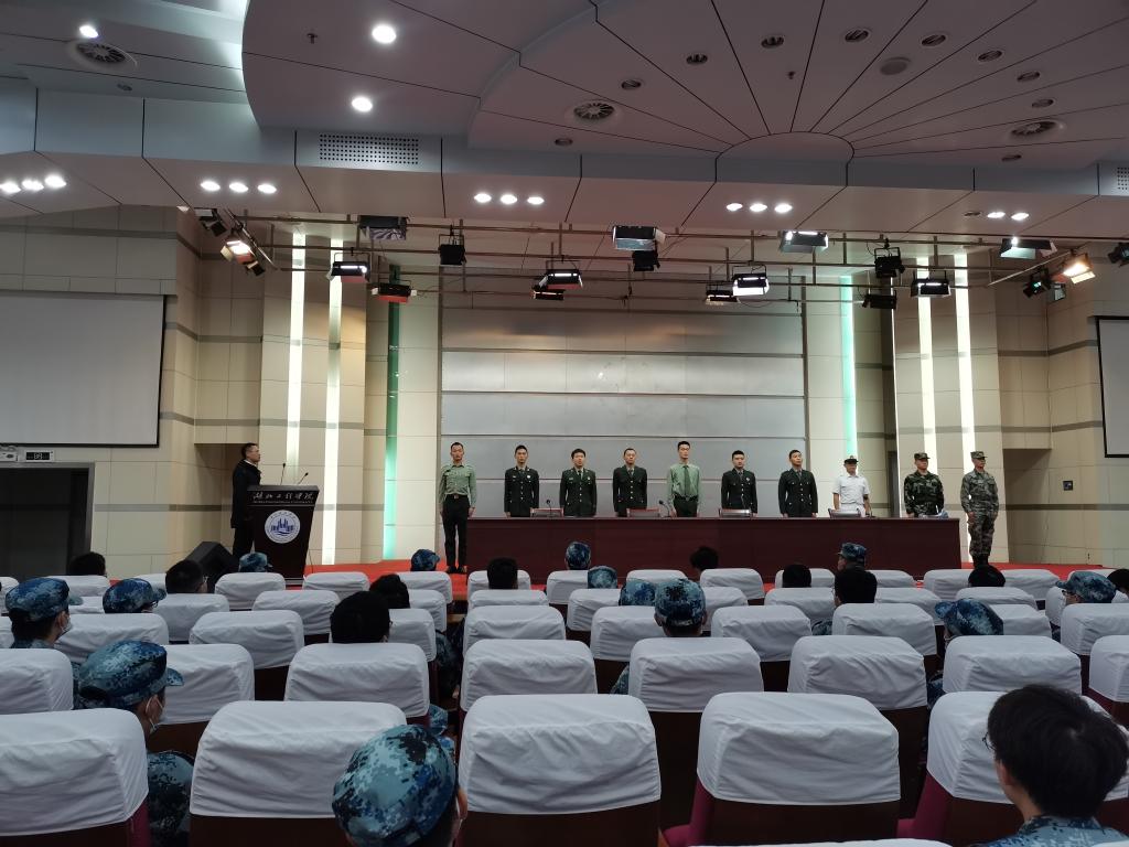 下午,以国防教育为主题开展了讲座和宣讲活动。副书记钟鸣老师主要从增强国防观念、普及国防知识、发扬爱国精神等方面入手讲授了国防微课。分团委书记、军训辅导员禹建平老师重点解读参军优厚政策及军营生活对学生身心素养提高的重要作用。学工部胡明亮老师带领学校国防教育中心的优秀退役复学大学生为2020级新生做了精彩的宣讲报告,同学们被浓浓的国防教育氛围感染,掌声不断。