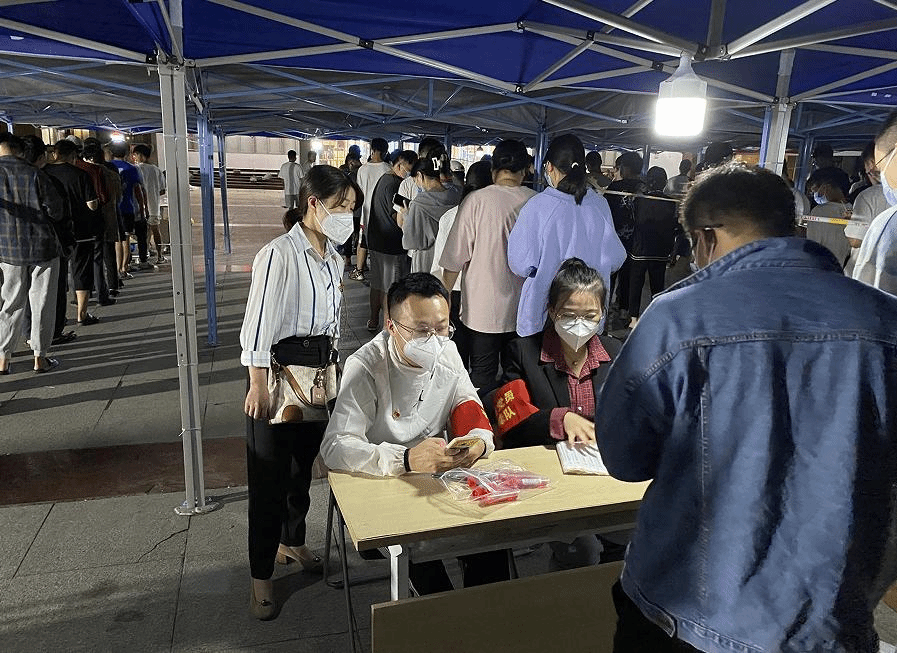 在核酸检测现场,志愿者们在做好自我防护的同时,各司其职,全面协助医护人员做好信息登记、人员疏导、为大家答疑解惑等工作。他们严格落实疫情防控措施,提醒每一位排队居民佩戴好口罩,认真负责地指导现场人员填写信息,协助医护工作者做好检测前的信息核对工作,确保核酸检测工作顺利进行。