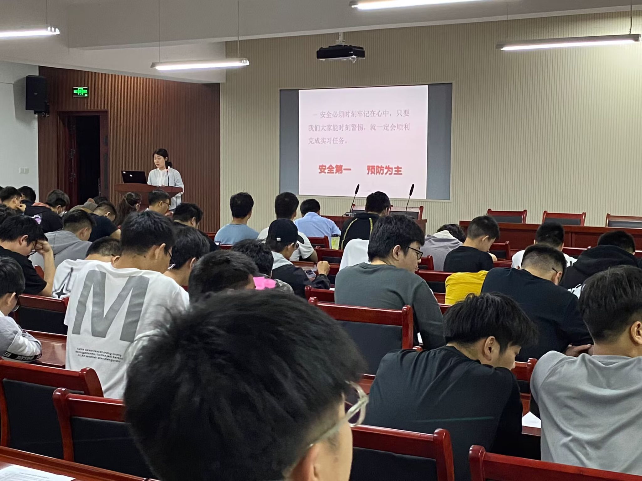 党委副书记杨晓薇作实习安全专题教育,她针对实习期间的相关安全隐患、自我防范意识、网络安全意识和防范等方面问题进行讲解,提醒同学们实习期间要高度重视安全问题,提高认识,牢固树立安全第一思想,要求同学们严格遵守法律法规及单位的岗位工作规范,确保实习期间安全。
