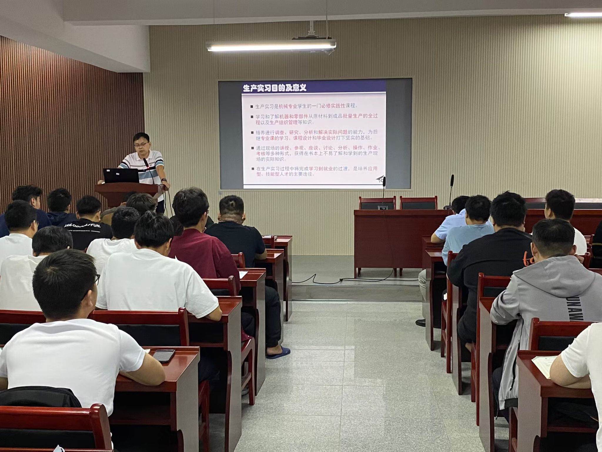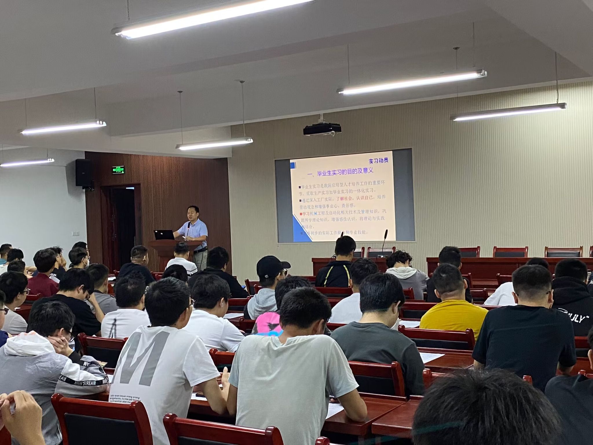会上,副院长徐刚介绍了毕业实习的目的、意义,围绕实习教学安排、毕业资格和基本条件、毕业(论文)设计要求等方面进行了讲解与部署,希望大家要重视毕业实习,通过实习提高专业技能,提升综合能力,为踏入社会打好坚实的基础。随后,肖生浩博士还就实习内容、实习课程、实习时间、实习行程安排和实习期间有关注意事项进行了详细的讲解说明,强调本次实习单位均为我校的实习实践基地。